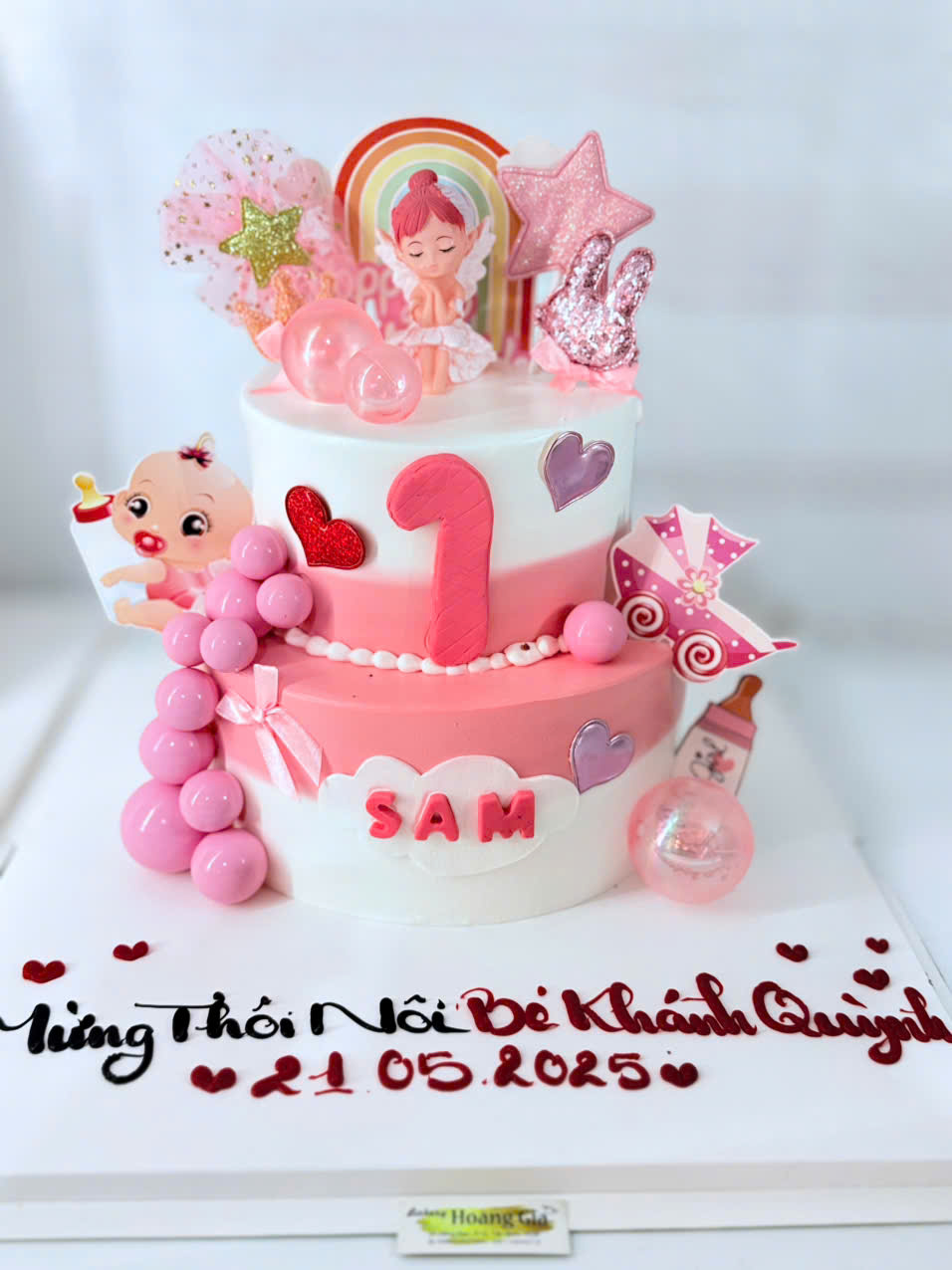 Bánh kem mừng thôi nôi 2 tầng mẫu mới 2025