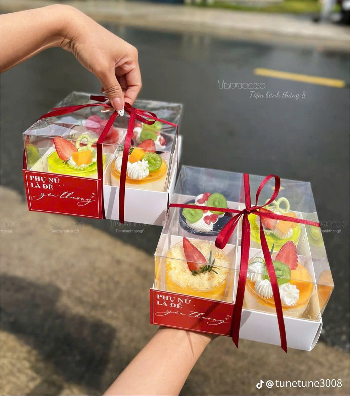 Giá set chỉ từ 299.000đ – 399.000đ, được đóng hộp sang trọng, có thể kèm hoa tươi hoặc thiệp chúc mừng miễn phítheo yêu cầu.