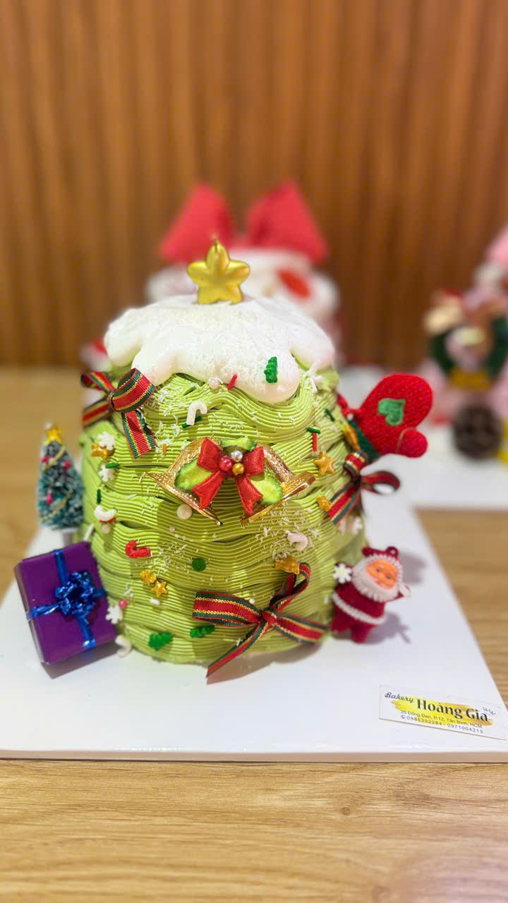 Bánh Giáng Sinh Hoàng Gia nổi bật với cốt bánh mềm mịn, kem béo nhẹ, trang trí Noel xinh xắn. Ưu đãi đặc biệt đồng giá 199.000đ, tặng kèm bánh mì cua phô mai hoặc bánh ngọt – lựa chọn hoàn hảo cho mùa lễ hội.