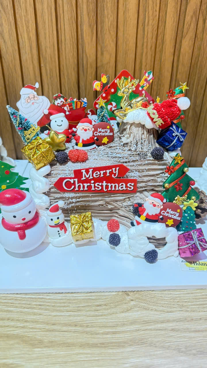 Bánh Giáng Sinh Hoàng Gia nổi bật với cốt bánh mềm mịn, kem béo nhẹ, trang trí Noel xinh xắn. Ưu đãi đặc biệt đồng giá 199.000đ, tặng kèm bánh mì cua phô mai hoặc bánh ngọt – lựa chọn hoàn hảo cho mùa lễ hội.